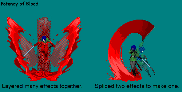 Blood as an Effect First things first: Blood splatters, blood is thick, and blood is red. I hope at least some of you know that. When choosing preexisting effects to turn into blood, choose wisely. Effects such as the ones below don't work very well because they are whole, together, and not very freeform.