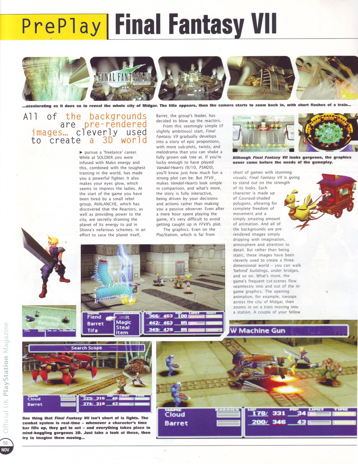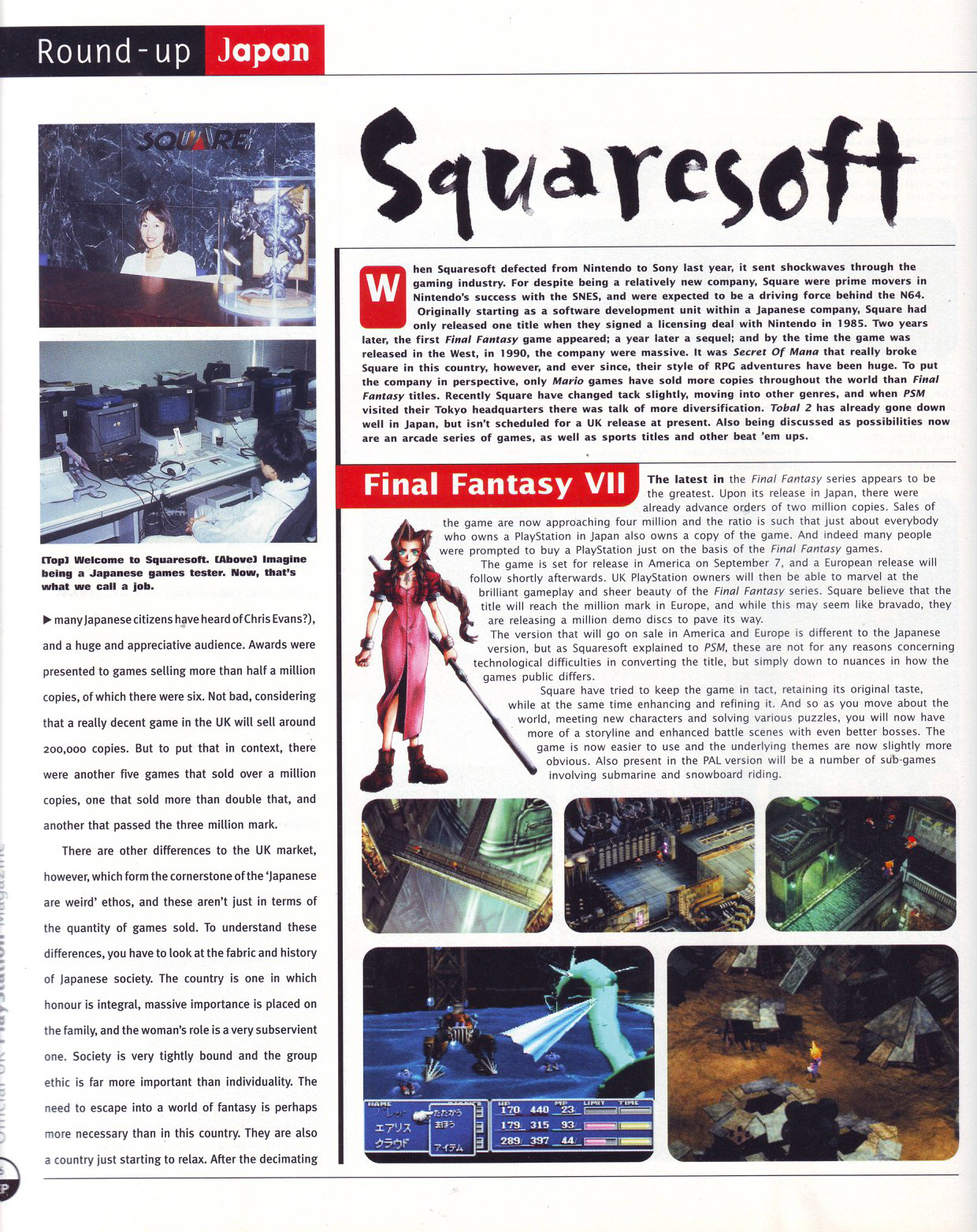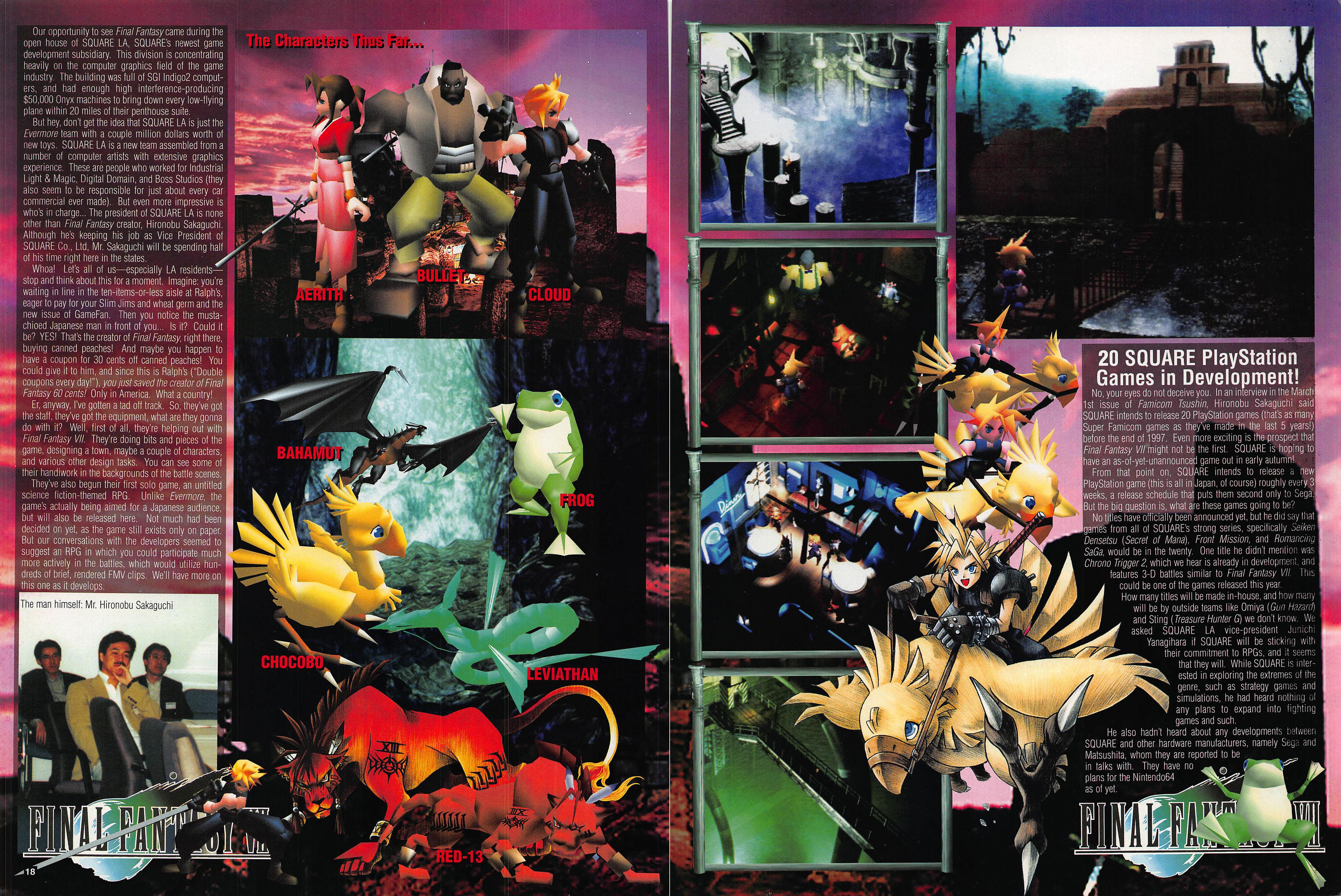 ![]() One of the main reasons for Final Fantasy 7's overwhelming success was the hype it generated. Between 1996 and 1997, it was the most talked about and most anticipated title from Squaresoft. Even if it wasn't a feature in one of the many gaming magazines from the time, it was always mentioned in some way. Mostly in comparison to other games that were slated for release or on a "Most Anticipated" list at the front of the magazine. Here is a collection saved from Archive.org of all the articles that I could dig up about Final Fantasy 7, starting back as early as 1995.