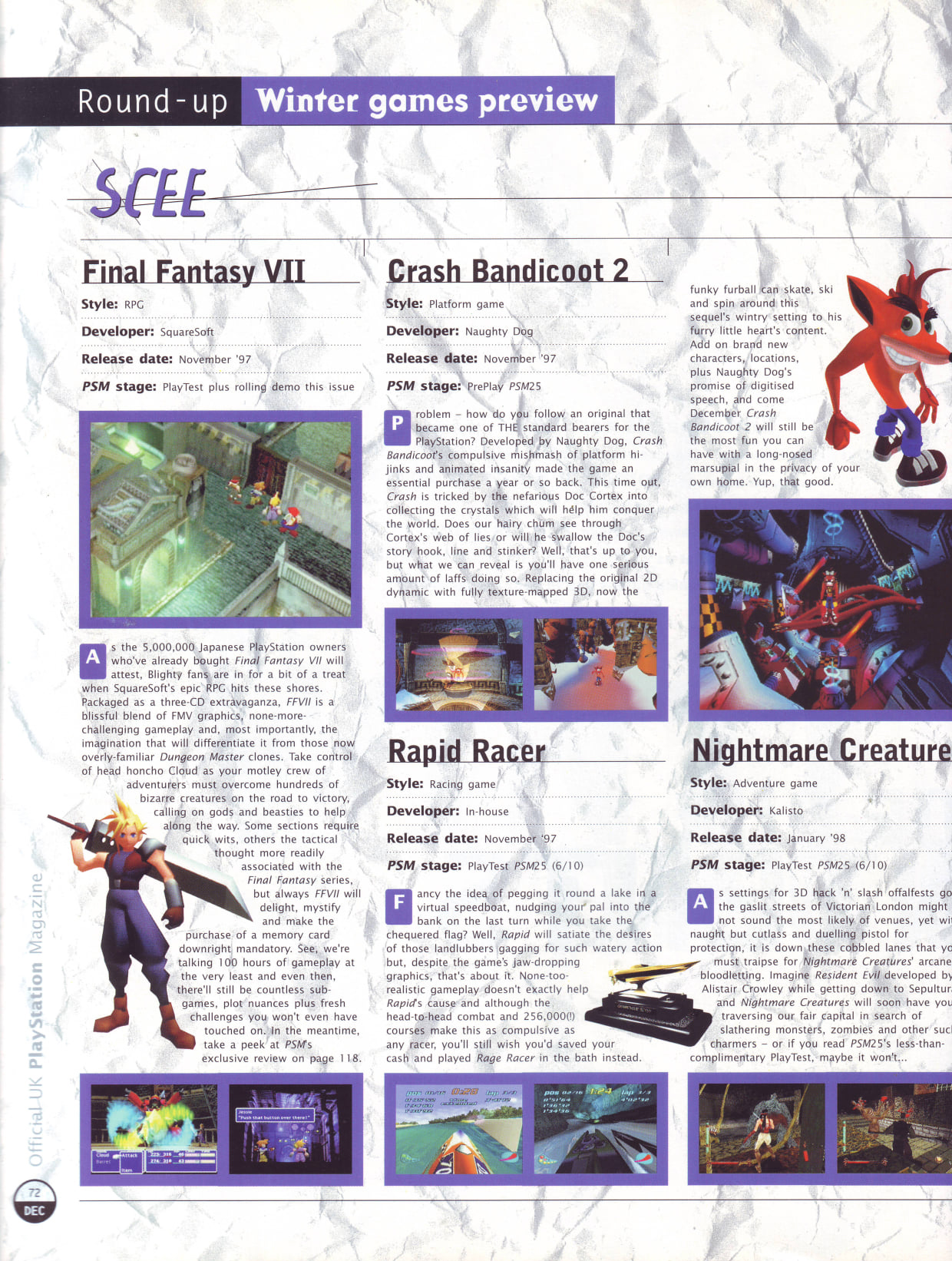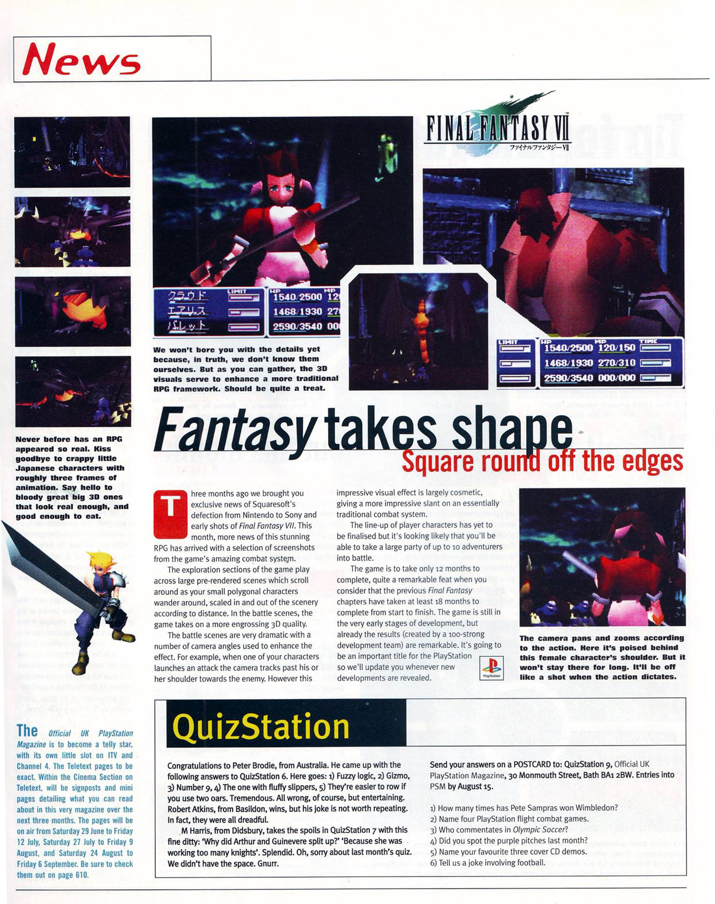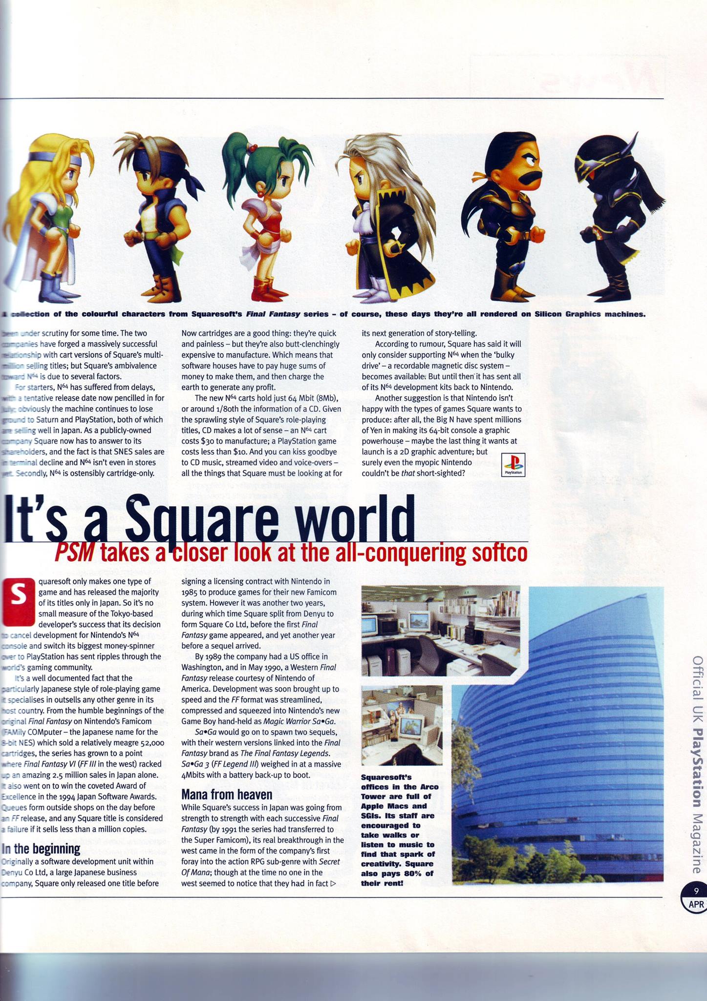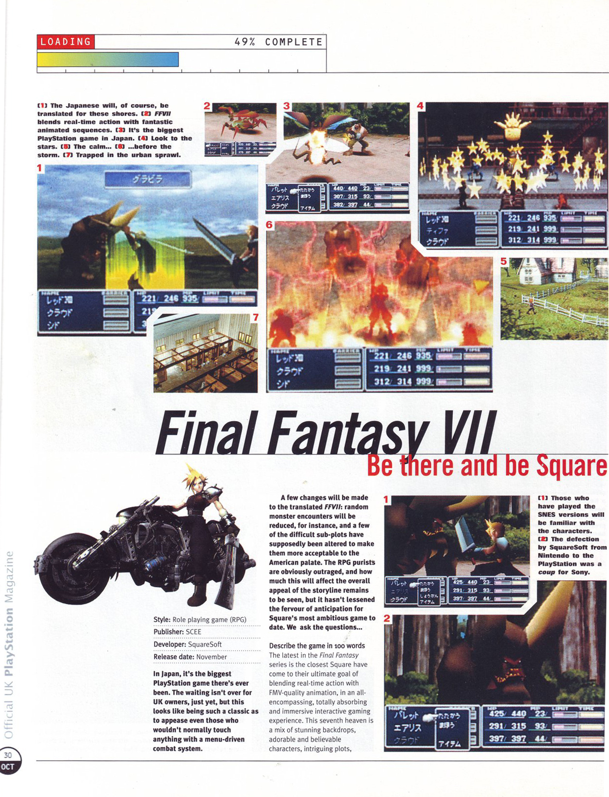 ![]() One of the main reasons for Final Fantasy 7's overwhelming success was the hype it generated. Between 1996 and 1997, it was the most talked about and most anticipated title from Squaresoft. Even if it wasn't a feature in one of the many gaming magazines from the time, it was always mentioned in some way. Mostly in comparison to other games that were slated for release or on a "Most Anticipated" list at the front of the magazine. Here is a collection saved from Archive.org of all the articles that I could dig up about Final Fantasy 7, starting back as early as 1995.