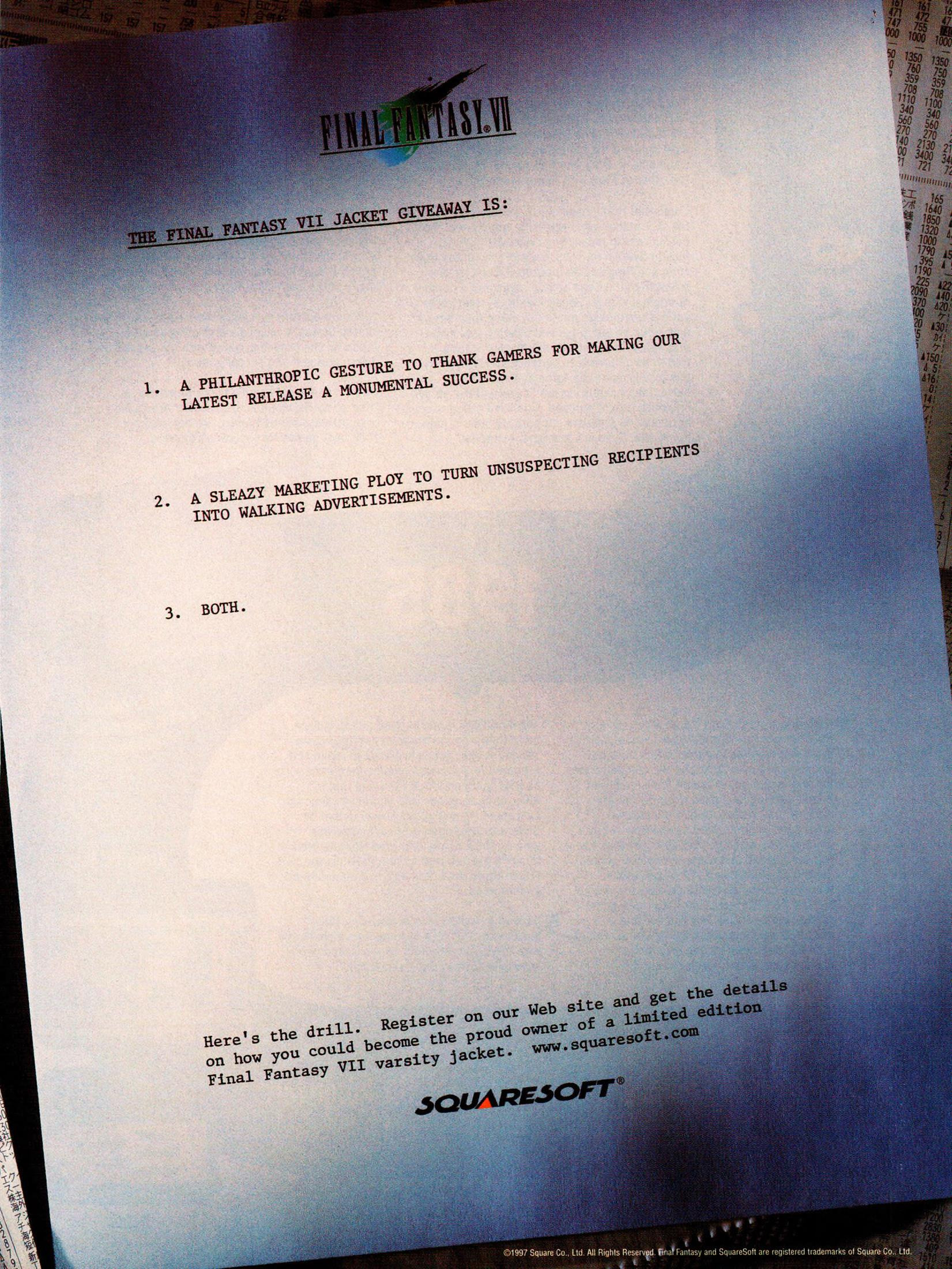 All Final Fanatasy VII commercials compiled by TheLifestream.net.